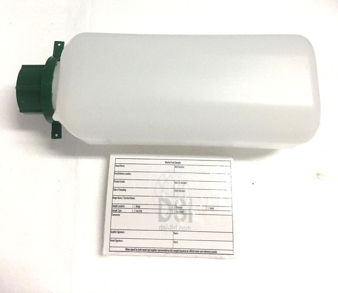Heavy-duty 750ml fuel oil sample bottle designed for marine and industrial testing. Specifically engineered for safe collection and storage of fuel samples during bunkering operations. Clear, durable, and compatible with most standard sampling drips and security seals.